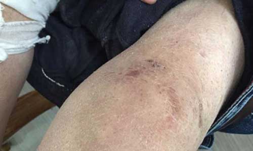 (图:王先生治疗第二疗程后右膝处痛风石已消除)