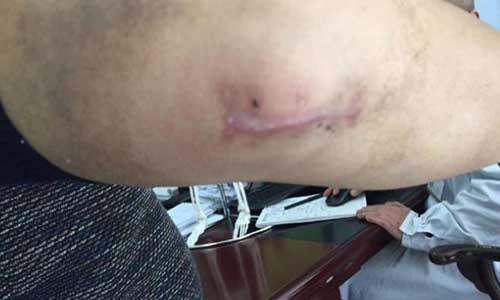 (图:王先生三个疗程治疗后手肘关节痛风石已消除)