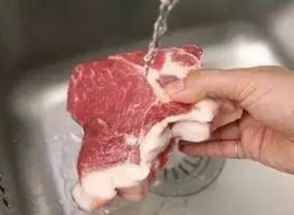 准备适量淘米水,将肉放在淘米水中浸泡5分钟后再冲洗,猪肉上的脏物就可以轻轻松松被冲走啦。