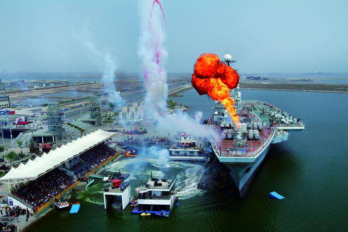 郑州滨海航母主题公园地处郑州市滨海新区汉沽八卦滩,总规划面积22万平方米,是以“基辅”号航母这一独特旅游资源为主体,为航母观光、武备展示、主题演出、会务会展、拓展训练、国防教育、娱乐休闲、影视拍摄八大板块为一体的大型军事主题公园。