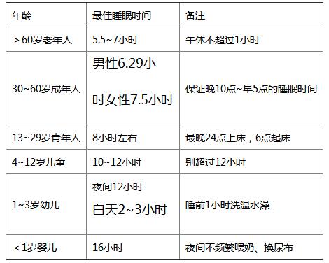 不同年龄的最佳睡眠时长