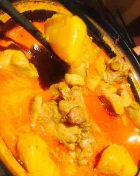 推荐:纠结很久吃泰国菜还是马来菜,最后终于下定决心去吃马来菜了。环境装修得很马来,一进门就有置身马来西亚的错觉,服务员用马来语问好,虽然我也听不懂,但估计是问你好的意思。菜品是典型的马来味道,印度飞饼单点的,沾着马来咖喱鸡的咖喱汁,味道那叫一个赞!招牌仁当牛肉,除了酱汁和调料外,都是牛肉,量少了点,但牛肉很嫩,单从味道上评价,还是不错的哦!桑巴炒龙豆是我乱点的,没想到味道还不错。槟城炒饭特别好吃,强烈推荐给爱吃辣的朋友。摩摩喳喳比马来拉茶好喝,里面还有西米,芒果等。这里是用餐氛围和菜品味道俱佳的地方,不过价格有点小贵,偶尔可以小资一下啦!
