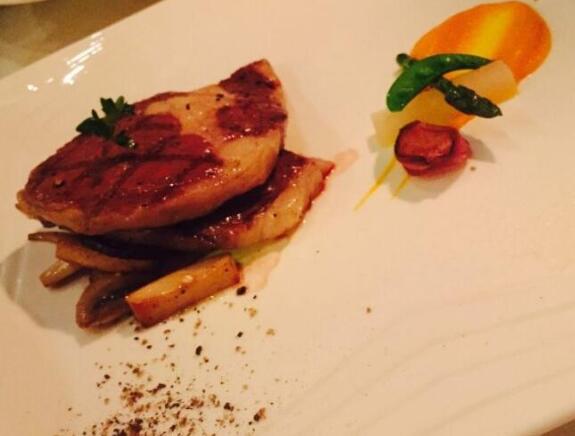 推荐:听朋友介绍这里是超正宗的法式餐厅,借着生日之际,来这里探索美食之旅。走进楼里迎面的是一辆第一代的赛道摩托车和最早的LV的木箱,随着服务员的引领来到二楼,走到阳台,园内的大片草坪和远处的民园体育场的景观尽收眼底,真是不可多得的闹中取静的洋楼。这次品尝的亮点是夜明珠和9级和牛,还特意点了一瓶波尔多葡萄酒增加气氛,和服务员说今天是过生日来的,餐厅还特意赠送了生日蛋糕。为了鉴定9级和牛和普通牛肉的区别,我和朋友分别各点一份,只能要3成熟,才能体验到鲜美,最好吃的是挨着肥肉的,对于区别,我只能说价格和牛肉的美味是成正比的。夜明珠造型超棒,化开后里面的蛋糕甜而不腻。此外,鹅肝酱非常细腻,马赛鱼汤很鲜美,烟熏三文鱼很入味。这次美食的拔草记忆深刻,值得回味!