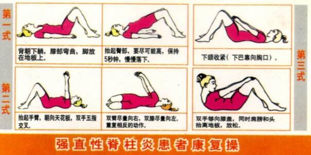 2、一般治疗: 强直性脊柱炎治疗方法虽然现阶段不能 ,但多数病人能生活得很好。对病人进行有关疾病科普教育有利于控制病情。强直性脊柱炎的治疗方法在早期诊断非常重要,尤其是对关节外表现的早期认识和治疗更是如此。每日体疗有益于保持良好的生理曲度,减少畸形和维持良好的胸廓扩张度;游泳是很好的全身运动。 运动应包括:保持脊柱灵活性的运动,如颈、腰各个方向的运动、转动等;维持胸廓活动度的运动,如深呼吸、扩胸运动;肢体运动;种类繁多,如散步,作一些体操等。我国的太极拳和气功,其动作缓慢、轻柔,对本病有一定的帮助。脊柱和髋关节有轻度屈曲畸形的病人,每日可进行)2次的俯卧1-2每次15-30分钟。利用自身体重作对抗性牵引,以达到纠正畸形的目的。
