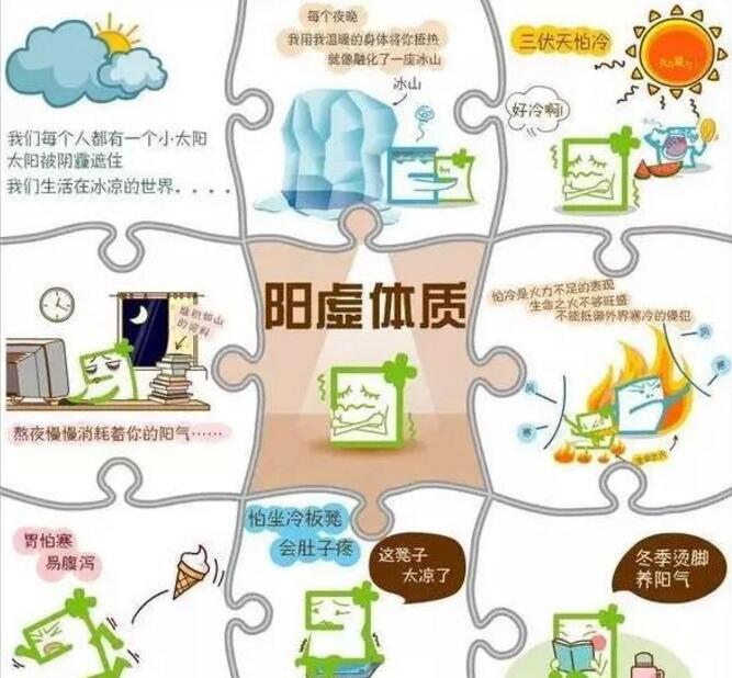 什么样的人是阳虚质呢?中医辨证阳虚质的人多为肾阳虚的人群,这一类人群多表现为容易感冒、腰膝冷痛、肌肉松软不实、喜暖畏寒、口淡不渴或口中咸味、声低懒言,舌淡苔白,脉沉迟。阳虚质的人容易感受风寒之邪,与湿邪胶结与关节部位,合而为痹,出现关节疼痛。