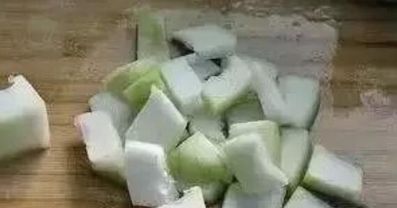 第一步,冬瓜去皮切块(当然皮也是极好的,不过太硬了,可以去了,另外煮水喝)
