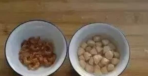 第二步,泡上点干海货(可以提鲜的,完全可以加入新鲜的虾仁,蛤等)