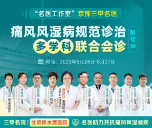 为帮助患者尽早进行科学规范治疗,我院将于8月26日-27日开展——“名医工作室”京豫三甲名医痛风风湿病规范诊治多学科联合会诊(限号30)活动。特邀北京三甲名院名医亲临郑州联合会诊,携手共抗痛风风湿顽疾。同期发放诊、查、治专项补贴,助力患者 !