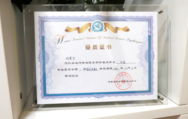 (图:杜爱华院长受聘为河南省医学科普学会风湿专业委员会副主任委员)