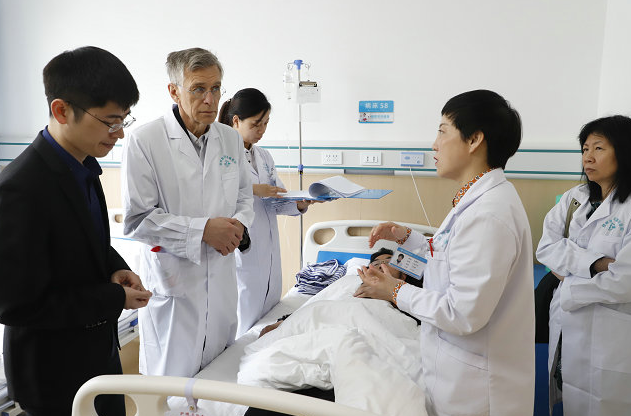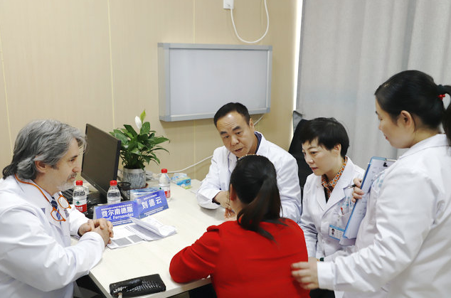 (图:杜爱华院长与美国德克萨斯州休斯敦医院疼痛医学教授赫雷罗·费尔南德斯、首都医科大学附属复兴医院刘德云教授联合为患者会诊)